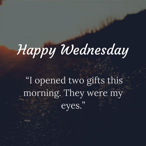 Funny Wednesday quotes. – A. S. Byatt. ” Practical! On Wednesday afternoons I could be practically anything. What’s up? .”. – Anthony T. Hincks. “When a day that you happen to know …Wednesday Quotes For Work “Wednesday will be amazing so wake up and smile!” – Anonymous “Commit to your goals – Once you have set your goals, you have to fully commit …This Wednesday, be sure to believe in the beauty of your dreams! You never know what tomorrow may bring. The moment you give up is the moment you let someone else win. – …Aug 24, 2021 · Here’s our list of funny Wednesday quotes that will make you smile: Wednesdays are like Mondays in the middle of the week! LEE FOX WILLIAMS. If all our national holidays …Inspirational Quotes for Wednesday It’s a voluntary act. I cannot punish anyone not taking the public transport, but I want everyone, from the... What would you do if you weren’t …Mar 22, 2022 · Scroll more, and find motivational Wednesday quotes that you can relate to. 🙂 “Out of all the days of the weekend, Wednesday is the most balanced one. A perfect blend of …May 30, 2022 · “I do remember dreamy Wednesdays, In the rain creative pain.” — The Wannadies “Happy Wednesday! Love all, trust a few, do wrong to none.” — William …